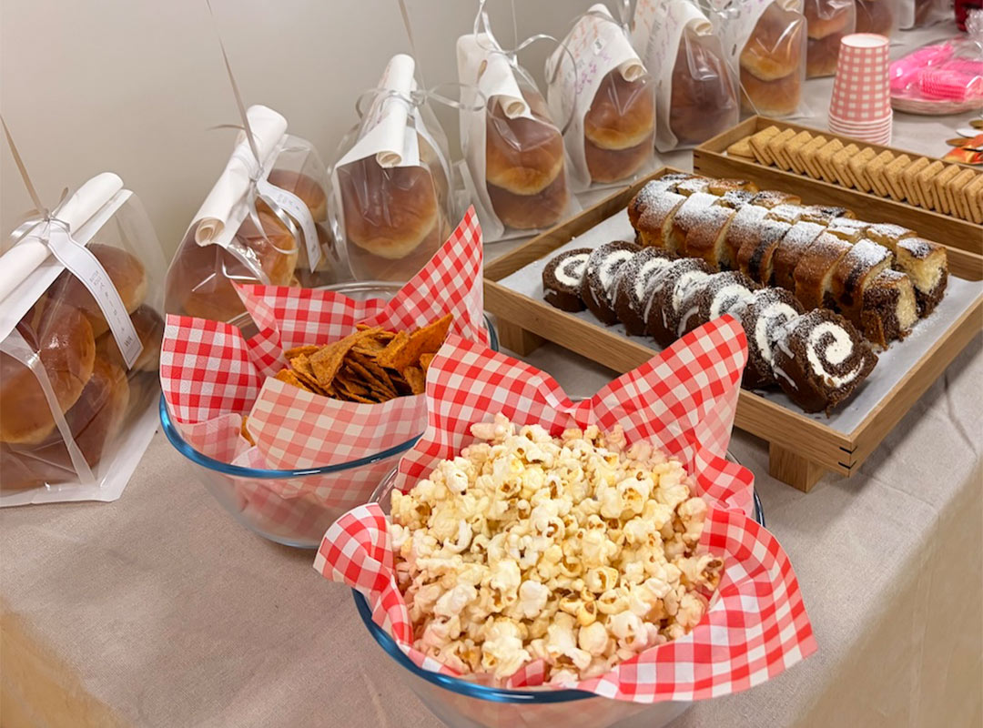 なので今回は、ケーキと一緒に日系ベーカリーで、5個入りのロールパンの袋をお土産用に人数分購入。日本式のバターロールはこちらにあまりないレシピなので、食べたことのない人もいるかと思ったけど、紙袋には来てくれた人へのメッセージを本人たちがそれぞれ書けるスペースがあるのと、持ち帰ったあとも家族で食べてもらえるので。