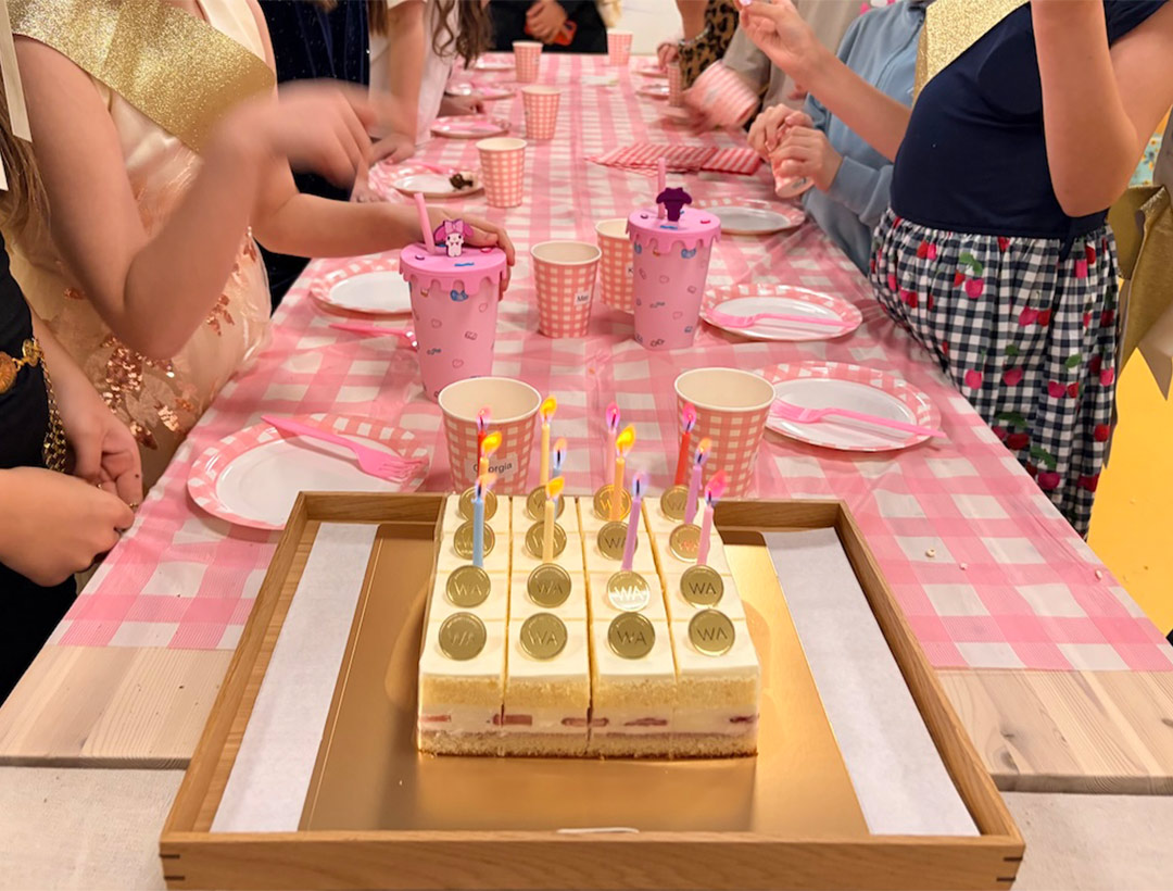 ドレスアップしたガールズ20人くらいを招待して、それぞれにタワーのスイーツ、親には別のテーブルでシャンパンとワインも。ミュージシャンの生演奏によるダンスタイム、からのバースデーソング。