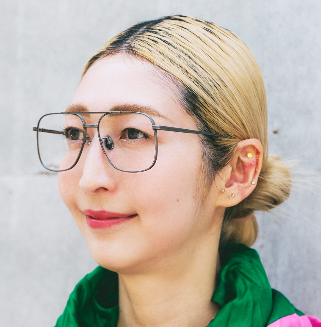 デザイン性と軽やかなつけ心地が人気の『フミカウチダ』のダブルリッジメガネを愛用中の成美さん。大ぶりなデザインながらも華奢なフォルムで、主張しすぎず上品に仕上がるのがポイント。ウエストポーチやスニーカーを合わせた旬のスポーツミックススタイルにもぴったり♡