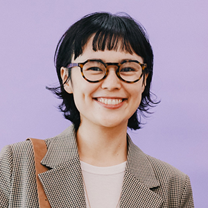 MAMA:ダブルブレストチェックジャケット¥4,990、ソフトシアークルーネックT¥990、バミューダショートパンツ¥2,990、ボリュームソールビットローファー¥2,990、2WAYロングベルトバッグ¥2,990、スライドチェーンナローネックレス¥590、UVカットクラウンパントサングラス¥1,290、その他=本人私物