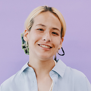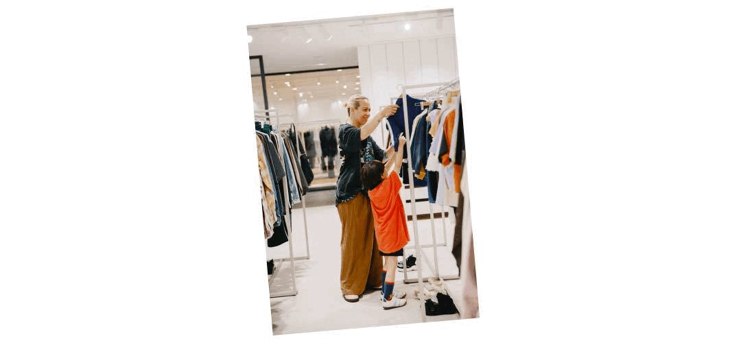 MAMA:ドルマンスリーブシャツ¥2,490、デニムタックトラウザー¥2,990、コットンブレンドクロップドキャミソール(ドライ)(ローズ)¥990、ジャーマントレーナー(メンズ)¥2,990※オンラインストアおよび一部店舗のみ販売、その他=本人私物