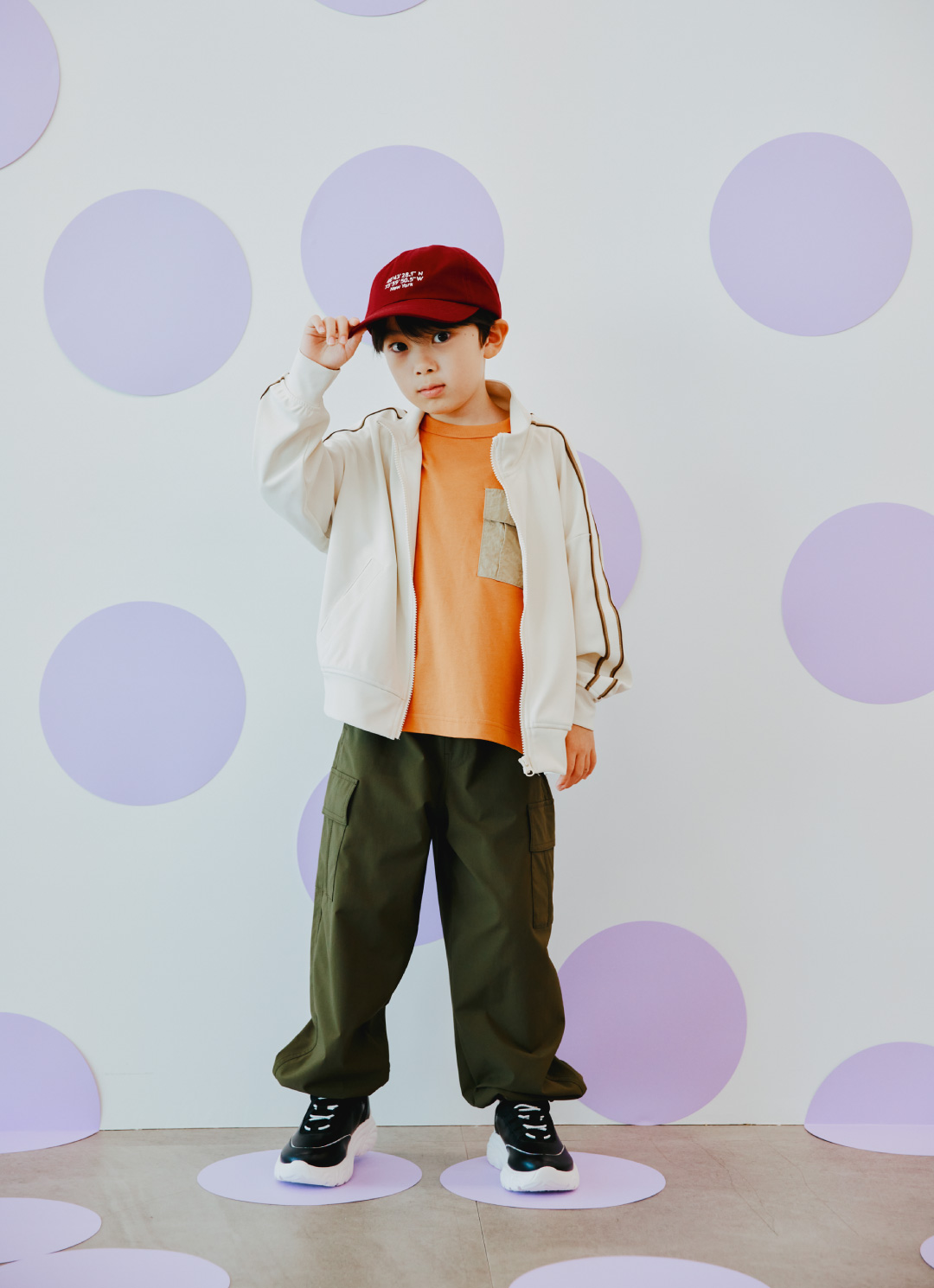 オレンジ、カーキ、エンジとオータムカラーでまとめたスポーティルック。ワイドシルエットのジョガーパンツとビッグシルエットのトラックジャケットで、ゆるく着こなすのが気分。パンツの裾はゴム入りなので動きやすく、足元おしゃれもしっかり主張できる!