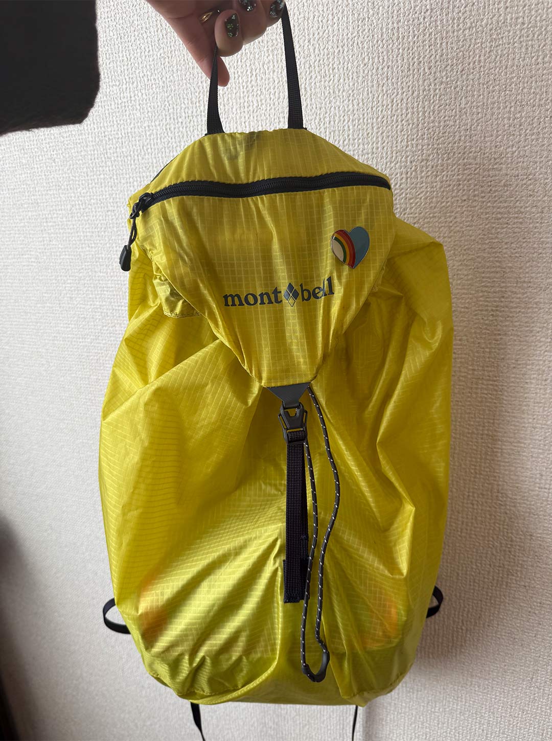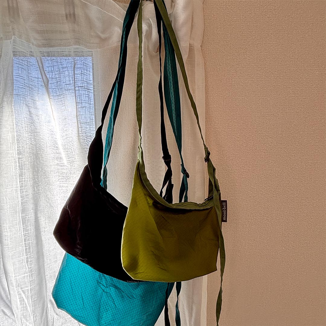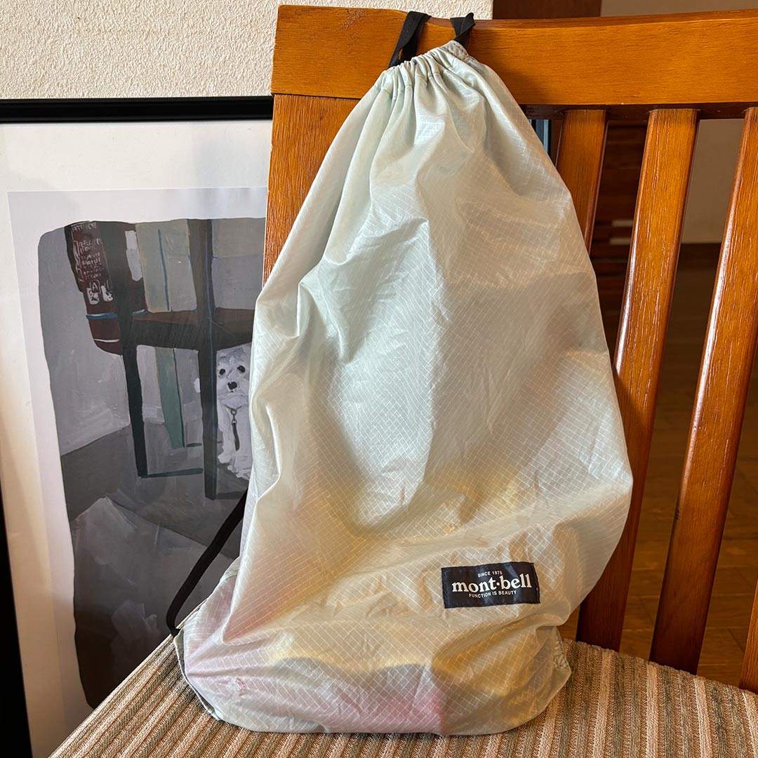 「子どもが産まれ、最初に抱っこ紐を使ってから『モンベル』のトリコに♡ ライトグレーのナップサックは、とにかく軽くて内側のポケットにすべて収まるポケッタブル仕様。エコバック感覚で気軽に持ち歩けます。バッグに忍ばせておいて、少し暑くなったときにマフラーや脱いだ上着を入れるのにもぴったりなアイテム!」