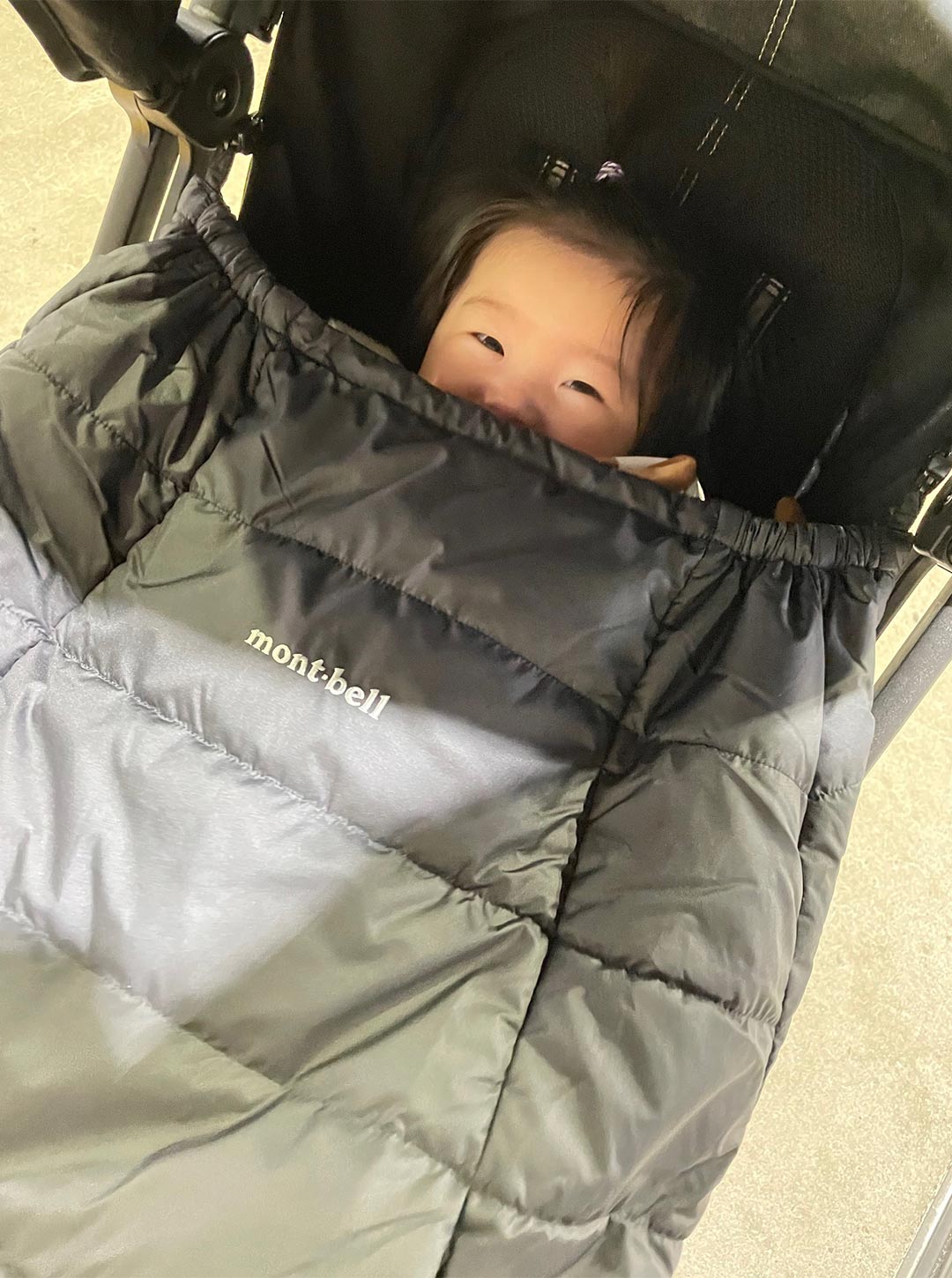 「ベビーカーに付けたり、抱っこ紐に付けたりと、寒い時期の必需品。今は自転車に乗るときの防寒アイテムとしても使っていて、赤ちゃん期からずっと愛用しています。使わないときはコンパクトに畳めるのも魅力。ポケット付きで、抱っこ紐だけで“ちょっとそこまで”のお出かけにも便利です。分厚すぎないので体温調整もしやすいのが嬉しいポイント。『モンベル』愛用歴は約10年。もともとはアウトドア用品をメインに使っていましたが、実は子育てグッズや普段使いできるアイテムも豊富で、本当に頼れるブランドです」