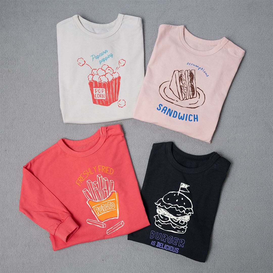 お昼寝時の着替えとしてロンTは必須なので、高コスパすぎて嬉しい! イラストのゆるいタッチも可愛くて、おしゃれ的にも大満足。息子は食べ物モチーフが大好きなので、園でご機嫌に過ごせています(編集・O)