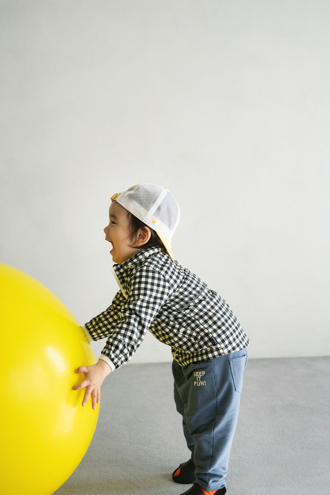 表地も裏地もやわらかな生地を採用し、元気に動き回りたいキッズをフォロー。左右のポケットは開け閉め簡単なスナップボタン付きで、ポケットの中身を落とす心配もなし。自宅の洗濯機で手軽に洗濯できるから、汚れを気にせず遊べるのもGOOD!