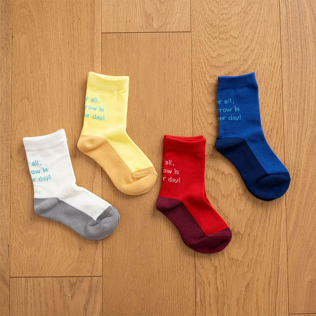 ボトムの丈を選ばず使えるクルー丈のソックスは、足底が濃色になっているこだわりの逸品。足裏の汚れが目立ちにくいので、かけっこや砂場遊びなど、外遊びを思いっきり楽しめる! カラフルなデザインだから、コーデのアクセントや挿し色としても効果を発揮。4枚セットでコスパも最強!