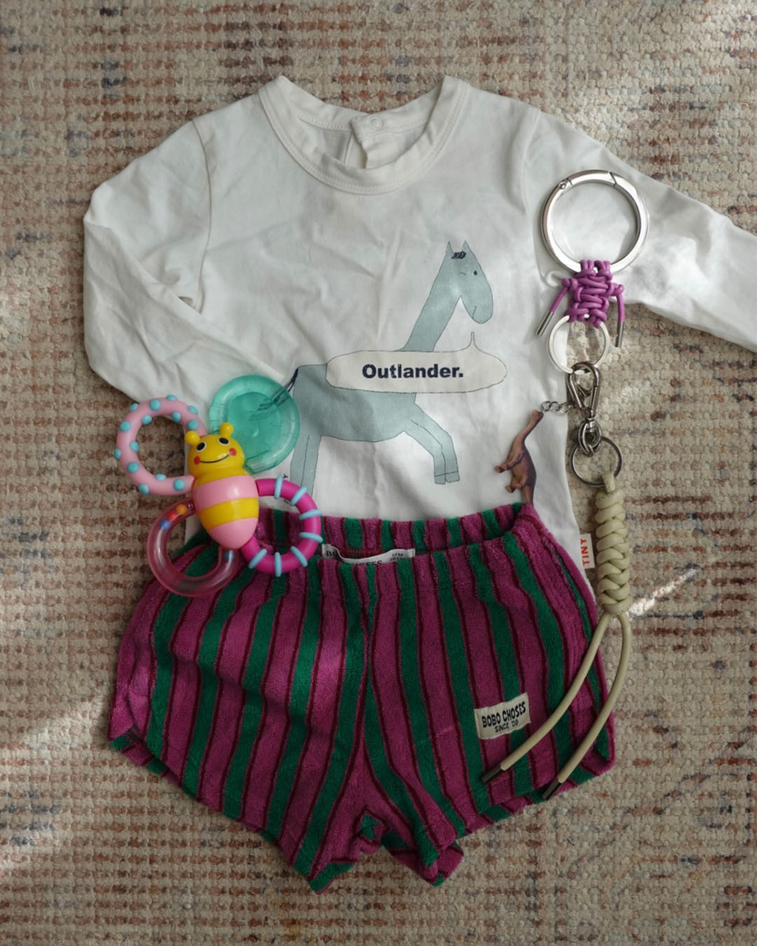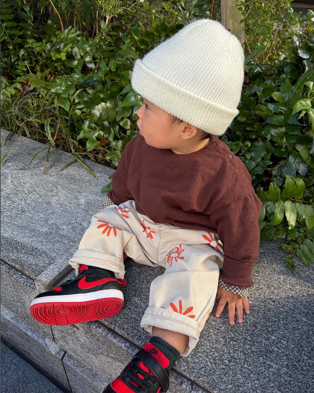 「娘が何でも口に入れたがったり、よだれも多かったりする月齢のため、手に取りやすい価格かつ、洗濯もしやすいカットソー素材が嬉しいポイント! また小花柄は春らしいムードを一気に高めてくれるので、あえてハンサムなアイテムを合わせたコーディネートをしたいなと想像が膨らんでいます」