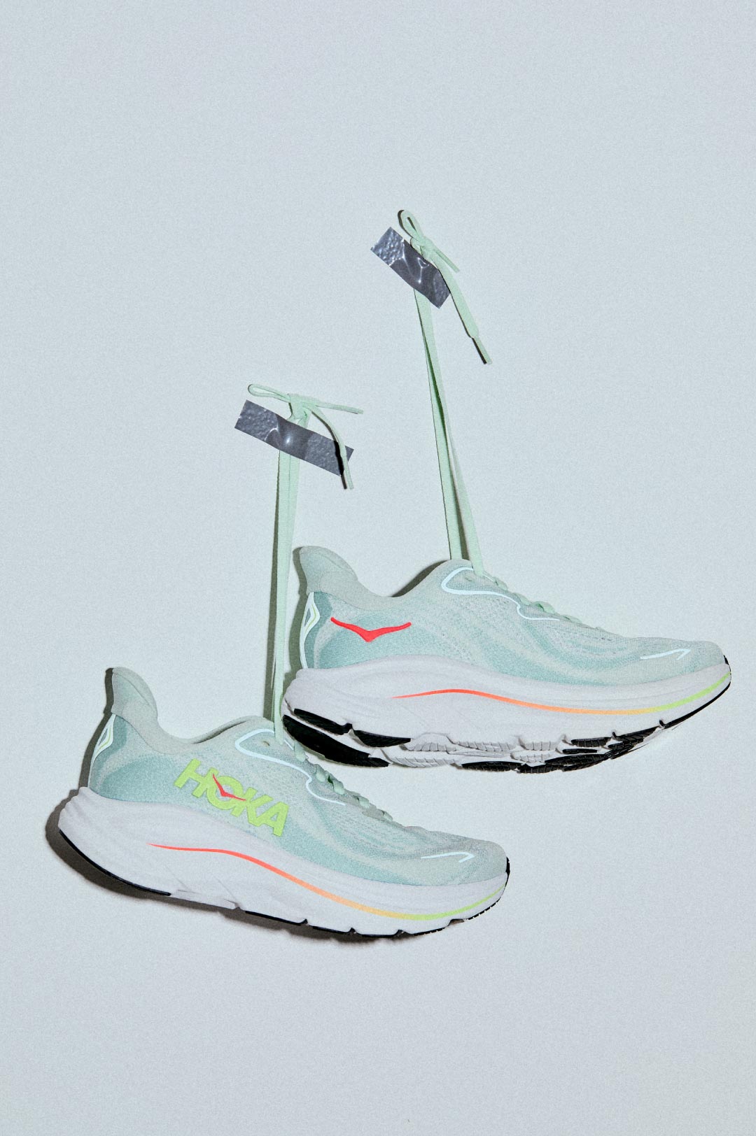 今年のトレンドでもあるランニングシューズ。中でも注目したいのが『ホカ®』の「Clifton 10」。淡いグリーンに、シンプルで洗練された佇まいが魅力。超軽量ながらクッション性の高いソールでたくさん歩く日も快適。通気性のよいアッパーでムレにくく、子どもとのお出かけにも頼れる一足。厚みのあるソールで、さりげなくスタイルアップできるのも嬉しい。