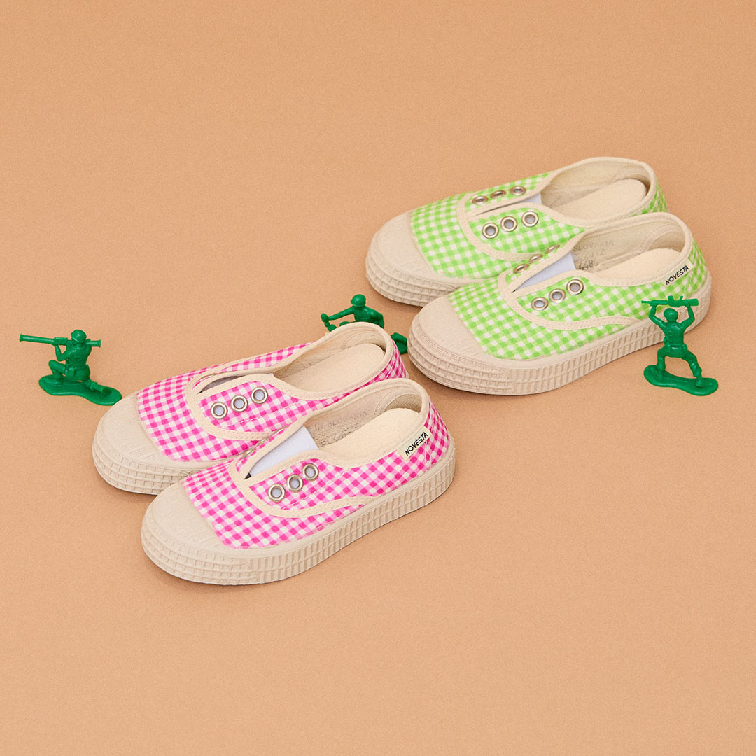 スロバキア生まれの老舗シューズブランド『NOVESTA』が手がけるキッズモデル、「STAR KID ELASTIC GINGHAM」。キャンディのようなカラフルなギンガムチェックとポップなカラーリングが足元をぐっと楽しい気分にしてくれる一足。創業当初からミリタリー用や仕事用として使われていた丈夫なソールを採用しているので、耐久性も抜群。中敷きは外して洗えるので、デイリー使いにもぴったり。