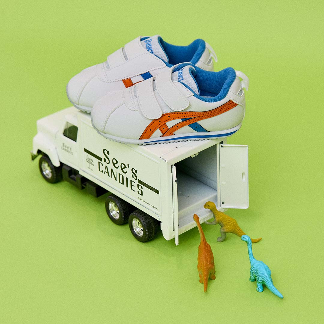 『ASICS』らしい爽やかなトリコロールカラーが目を引く「COTLA BABY SL2」。かかとを包み込む立体的な中敷が歩行時の安定感をサポートし、扇形のつま先設計で、足指がのびのびと動かせるのが特徴。アッパー部分は2本ベルトになっているので、フィット感が調整しやすく、元気に走り回るキッズにもぴったり。さらに、抗菌&消臭機能付きのインソールで気になるニオイやムレも抑えてくれるのも嬉しい。