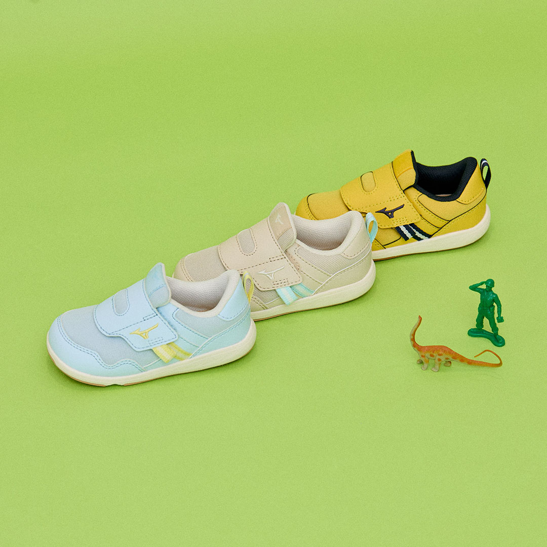 面ファスナーをパカッと開けて、ペタッと貼るだけで小さな子どもでも簡単に自分で脱ぎ履きしやすい、特許取得のピットイン構造が魅力の「ミズノプレモア インファント3」。走る、歩く、止まる、回る、切り替えるなど、足の動きに合わせて設計されたアウトソールで、元気いっぱい動き回るキッズの足元をしっかりサポート。抗菌消臭機能付きなので、暑くなるこれからの季節にも頼れる一足。