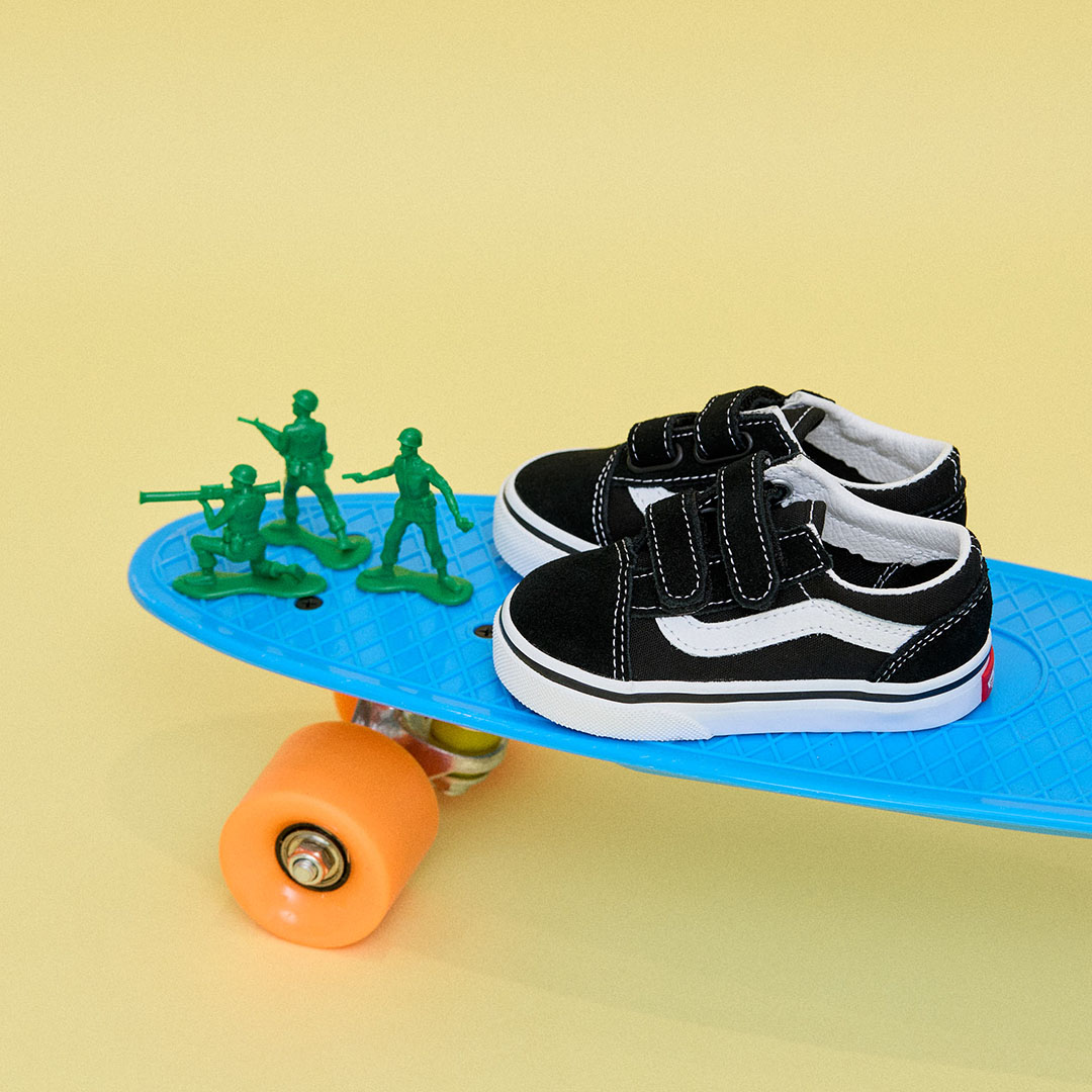 1977年にスケートシーンから誕生し、世代を超えて愛され続ける『VANS』 の名作「オールドスクール」のキッズモデル。ブラックのキャンバスに映える白のサイドストライプが印象的で、シンプルながら存在感のあるデザインが魅力。ダブルストラップ仕様で小さな子どもでも脱ぎ履きしやすく、デイリーコーデにも取り入れやすい一足。パパやママとオソロで楽しむのもおすすめ♡