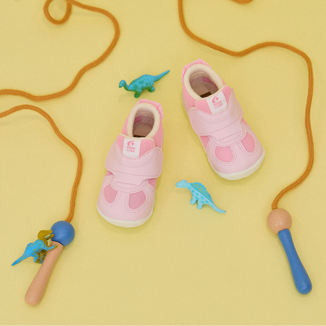 足元にオンするだけで春気分が高まる、やさしいピンクが魅力の「CR B170JM」。面ファスナーのバンドが大きく開くフルオープン仕様で、親が子どもの靴を履かせやすいように設計。やわらかく足なじみの良いヴァルカナイズ製法で、元気に動き回るキッズの足元をやさしくサポート。インソールは洗えるので、デイリー使いからキャンプや遠足などのアウトドアまで頼れる一足。