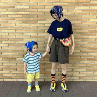 ギンガムチェックのセットアップが主役! ママはブラックでクールに