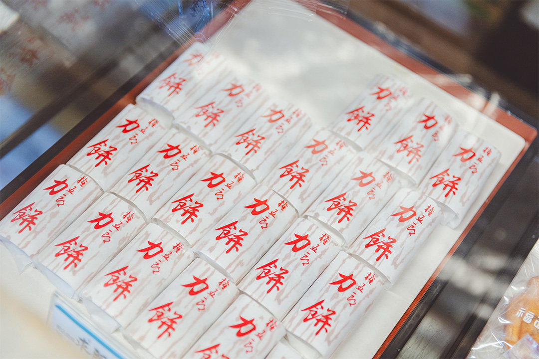 創業300余年の貫禄が堂々たる店構えに表れる『力餅家』。それでいてフレンドリーな雰囲気が漂う店先には地元の常連さんが引きも切らずに訪れます。持ち歩きにちょうどいい『求肥力餅』は賞味期限3日(※常温保存)ですが、添加物を一切使っていないため、やはりその日のうちに食べるのがベスト。小腹対策に食べられる分だけリュックへ。