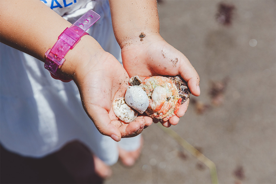 子どもにとって漂流物や貝殻拾いはお宝探しと一緒。自然や未知のものに出会ったときに感じる驚きや不思議を感じる心“センス・オブ・ワンダー”を、海は育む場所でもあります。だから波に触れ合う時間は要確保! 収穫物を入れる袋やビーチボールなどの遊び道具のほか、濡れたときに慌てないよう着替えも用意しておこう。