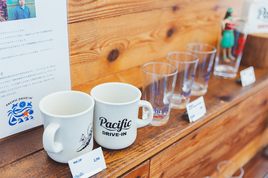 マグカップやグラスなど、オリジナルグッズも取り揃えている。