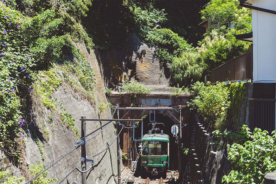 「極楽洞」は長谷駅と極楽寺駅の間にあるレンガ造りのトンネル。ここを電車が通過するときに車両の窓からひんやりとした風が吹き込んで気持ちいい。また陸橋からトンネルを見下ろすと、まるで鉄道模型のミニチュアの中にいる気分に。鎌倉には都心にない日本の原風景が残っています。「懐かしさ」を感じる心は小さな子どもにも備わっているからリラックスしてほどける表情を見逃さないで。