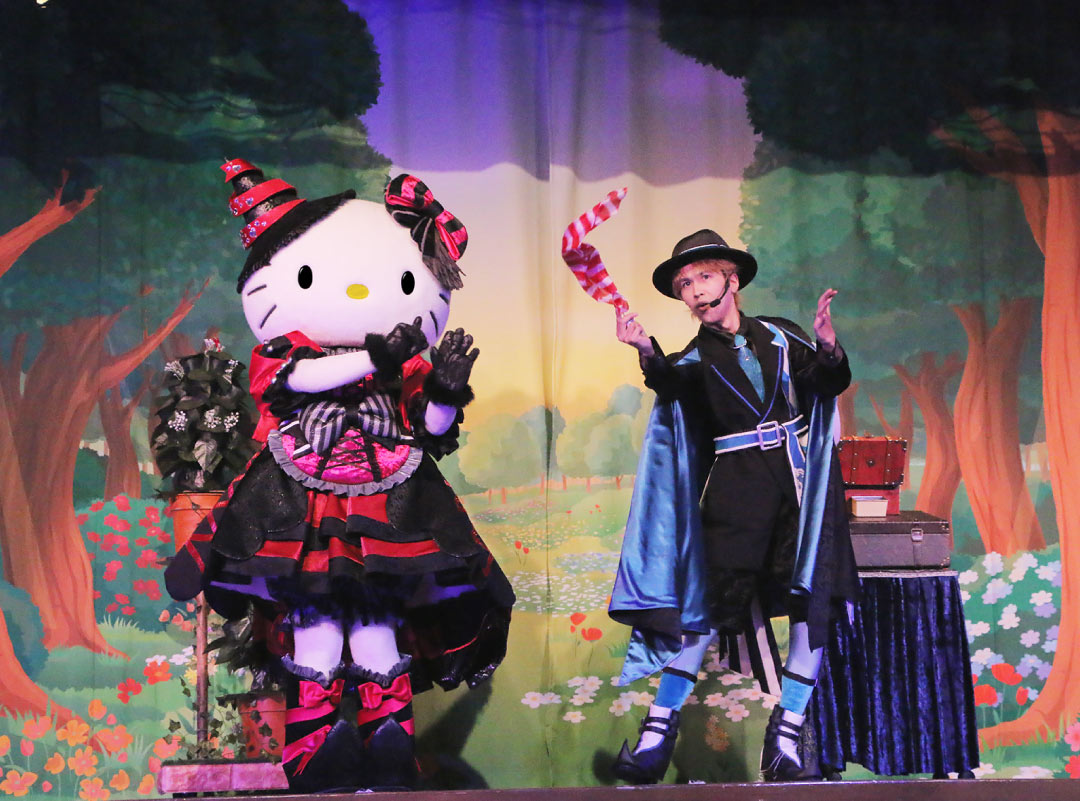 土日祝日限定で行われる特別なイリュージョンショー『Let’s マジーケヴィス! ~ハロウィーンの魔法とふしぎなお花~』では、ハローキティと国内トップのプロマジシャンによる本格的なイリュージョンショーを開催。ゲストも見習い魔法使いとなり、魔法使いの世界を体験できちゃう!