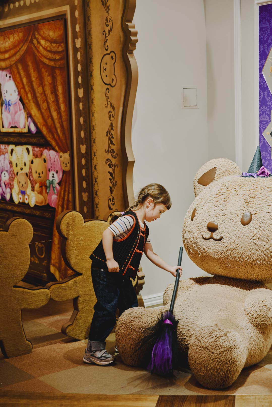 クマのぬいぐるみも帽子とほうきでハロウィン仕様に。