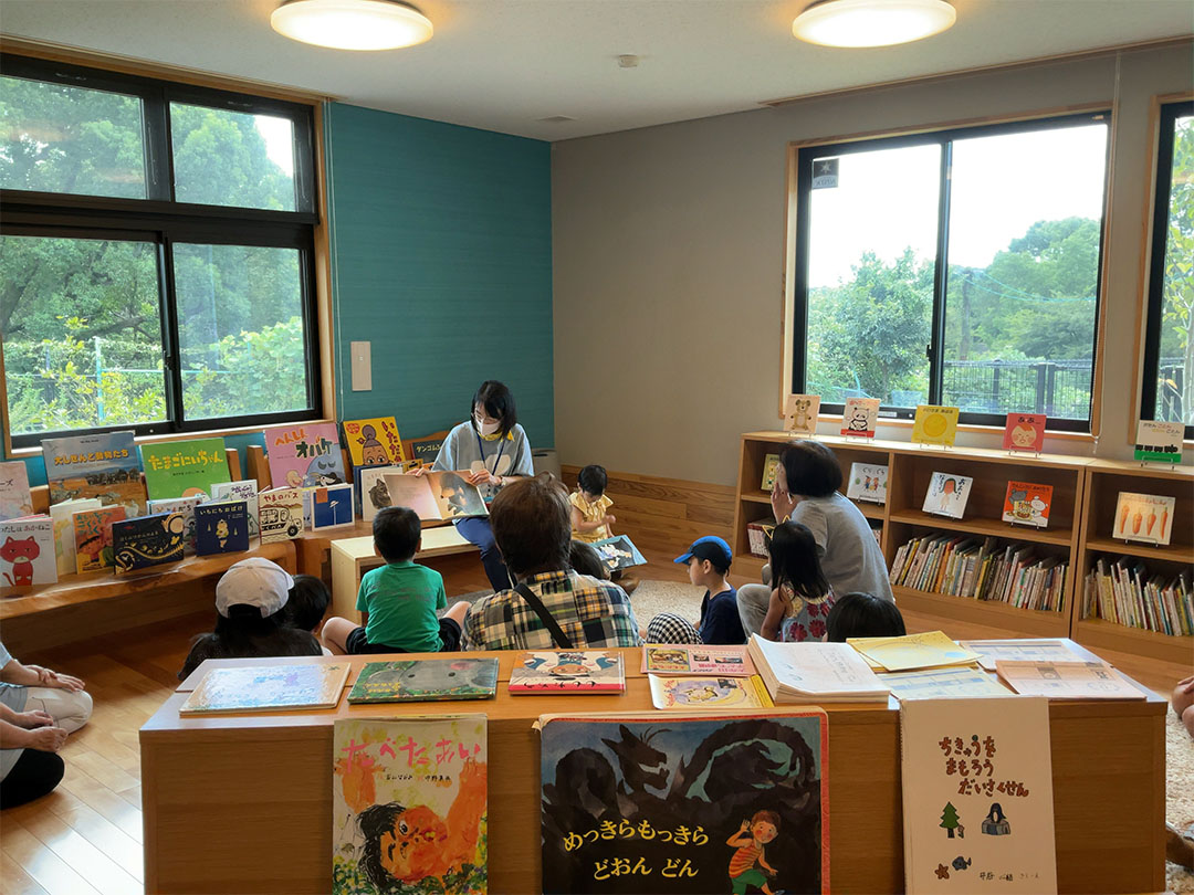 「ともだちルーム」は、靴を脱いであがることができるリラックススペース。ボランティアの方による読み聞かせも定期的に開催中!