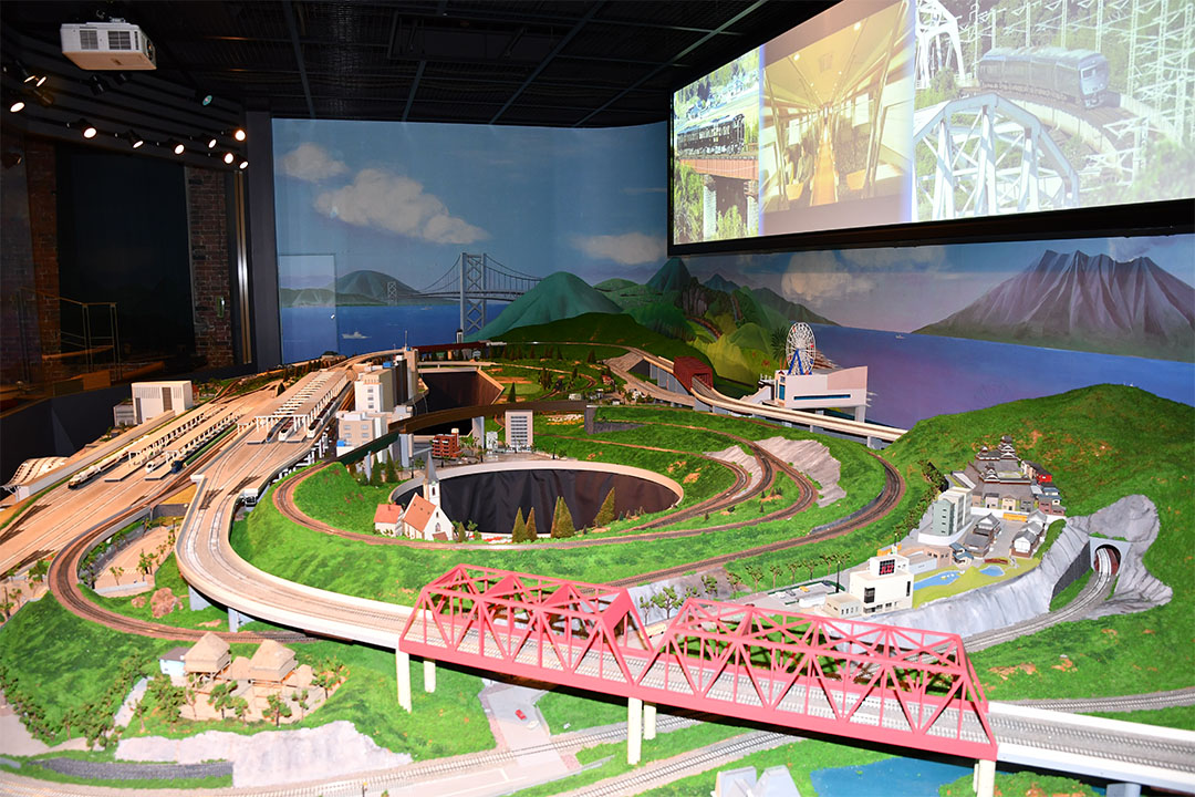 「九州の鉄道大パノラマ」は、九州中の人気列車が繰り広げる鉄道模型のショーランド。お客様運転(有料)もできる。