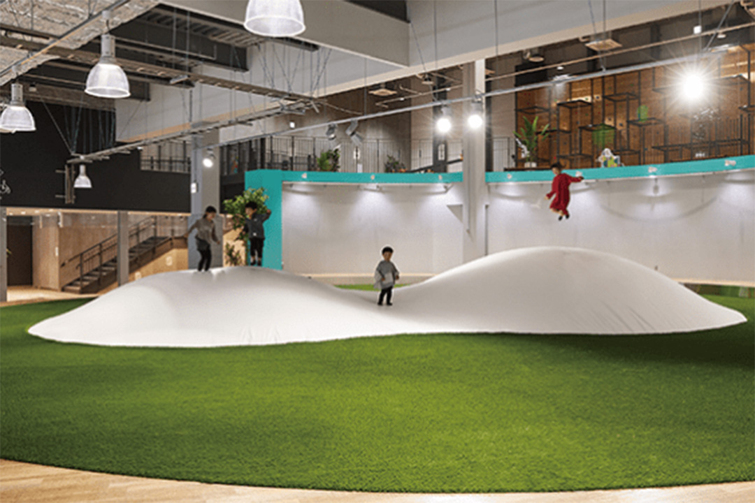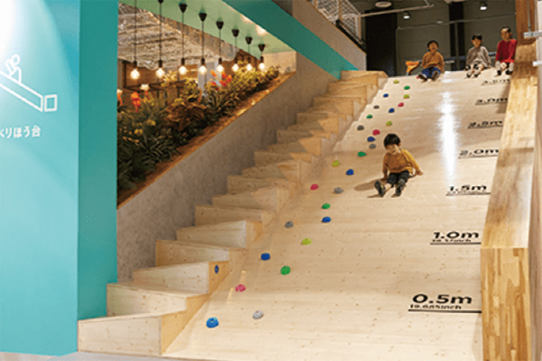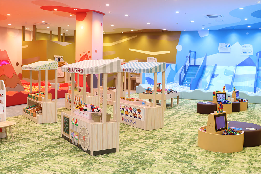 地球や自然をテーマにした、遊んで学べるプレイグラウンド『ちきゅうのにわ』。各エリアには、氷山をイメージした滑り台やボールが飛び出す火山、砂に触れる感覚を楽しめる砂場などがあり、遊びを通して地球のおもしろさや大切さを学ぶことができる。季節のイベントのほか、リサイクル材を活用した工作などSDGsや自然の大切さを学べるワークショップも随時開催されている。