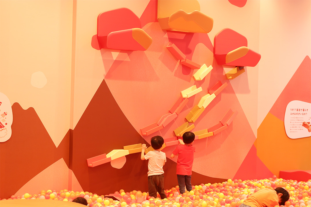 マグマが噴火する火山をイメージした「火山エリア」。ボールが飛び出す火山があるボールプールで、エネルギーを発散できる!