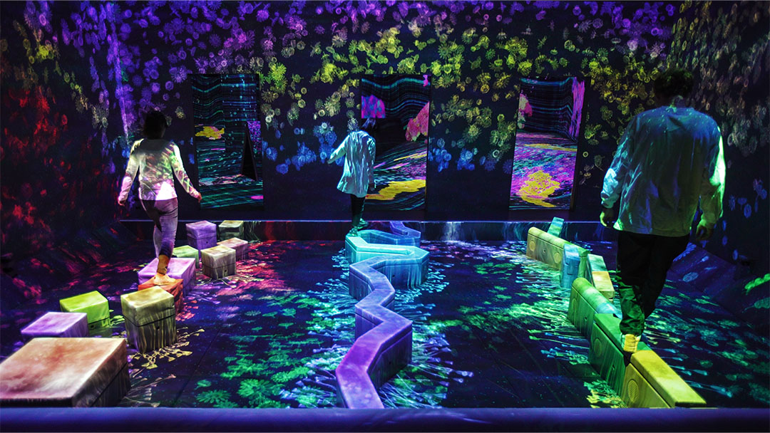 チームラボ《あおむしハウスの高速回転跳ね球》©チームラボ