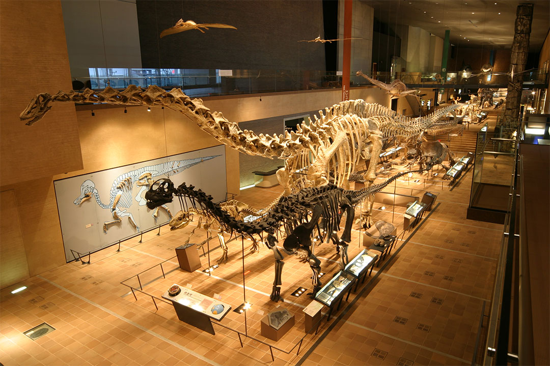 西日本最大級の『北九州市立自然史・歴史博物館(いのちのたび博物館)』では、約9,000点の動植物標本・化石・岩石・鉱物・レプリカなどを通して、地球誕生から現在までの自然・生命の歴史を教えてくれる。迫力ある恐竜の骨格標本が一堂に会する「アースモール」や、動く恐竜ジオラマで太古の世界を体感する「エンバイラマ館」は、恐竜好きにはたまらない! 貴重な歴史資料も充実し、子どもから大人まで、楽しみながら学ぶことができる。