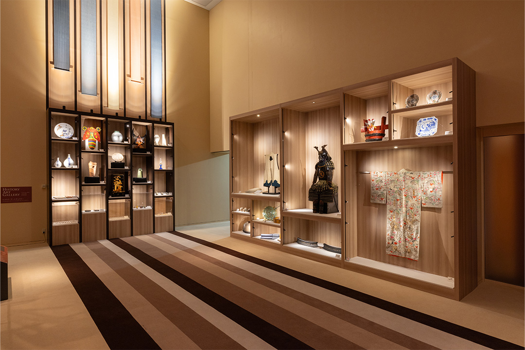 「FUKUOKA アジアに生きた都市と人びと」をテーマに、福岡の歴史と人々のくらしを紹介する常設展示室。教科書でもおなじみの国宝・金印「漢委奴国王」をはじめ、「博多祇園山笠」の舁き山、今でも動く国産自動車としては最古の「アロー号」などを展示。