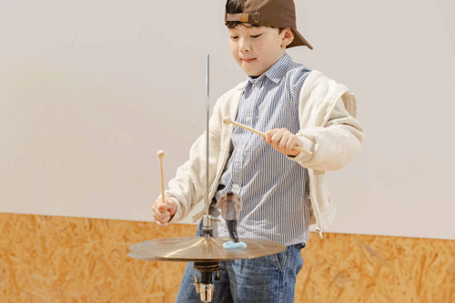 ただ上にジャンプするだけかと思ったら、くるくる回ったり思った動きと違ったりして、本人も不思議そうでした。せいたろうくんとのセッションも楽しそうで、音楽を介すと、コミュニケーションがスムーズにいくものですね。(ゆりかさん)