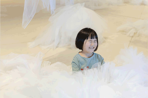 【チュールとゴムでできた大型遊具「チュール雲」】