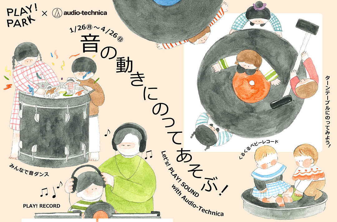 デジタルネイティブ世代の子どもたちが、アナログの世界に触れるとどう感じるのか? 子どもたちが新しい音と出会い、世界が広がる―――そんなきっかけを提供する、『Audio-Technica』×『PLAY! PARK』のコラボイベント「音の動きにのってあそぶ! Let’s! PLAY! SOUND with Audio-Technica」が4/26(日)まで開催中。
