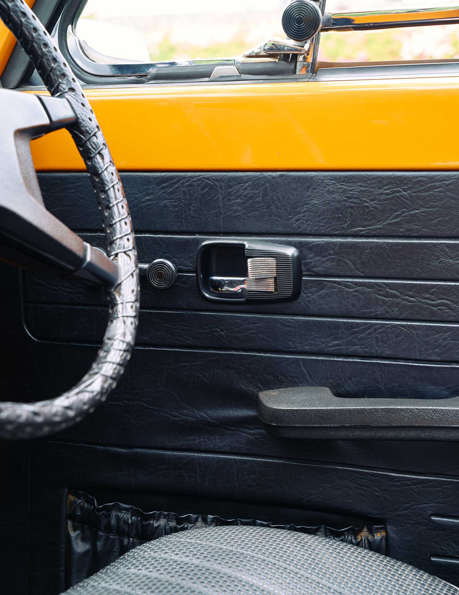 鮮やかなオレンジやレトロなシルエットが魅力的。また、フロントにトランクがあるところも使い勝手がいいです! 駐車場に入れても出しやすいので、よく使うものを入れています。娘のキックボードもここに収納。