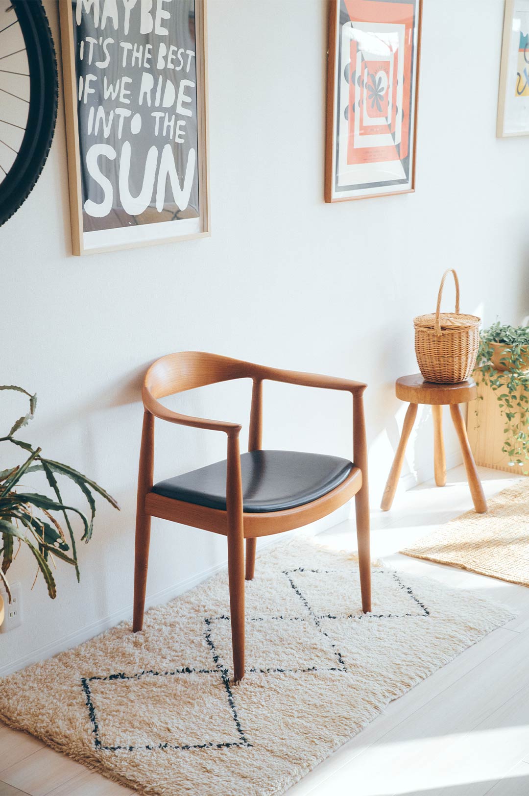 〈ハンス・J・ウェグナー〉のザ・チェアは、濱中さん宅のシンボルチェア。「猫も子どもも平気で座っていますが(笑)、わが家にある名品です。家具はできる限り、価値の変わらないものを増やしていきたいです」