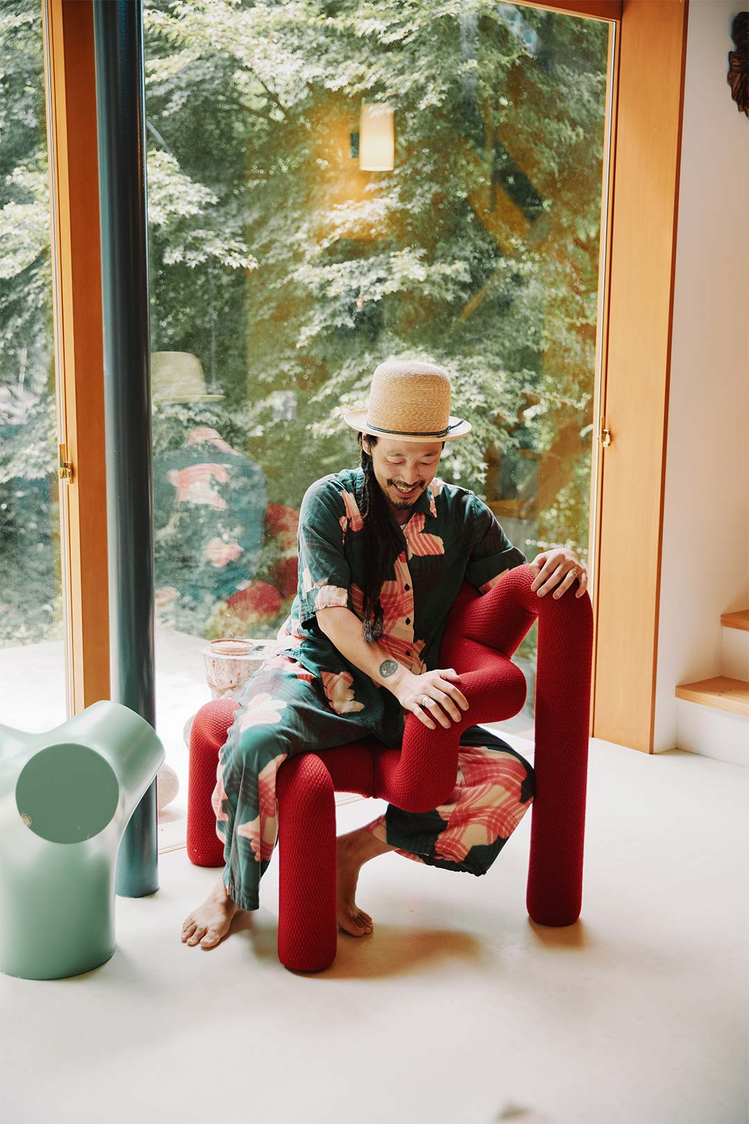 「椅子がとにかく好きなんです」という裕也さんは、窓辺に置かれた〈エクストレム〉のバランスチェアにおもむろに座る。一見どう座っていいのかわからないデザインながら、実はどんな風に座っても座り心地抜群という優れもの。子どもたちにとっても最高の遊び道具になっている。