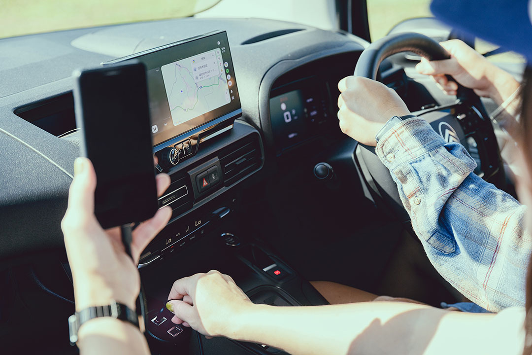 スマートフォンをUSBケーブルで車両と接続して、10インチのタッチスクリーンにアプリを表示。この「ミラースクリーン機能」を使えば、目的地の検索はもちろん、音楽を聴きたいときも、タッチ操作でサクサク♪ それぞれが好きな音楽を順番にかけて、家族で歌いながらドライブ!