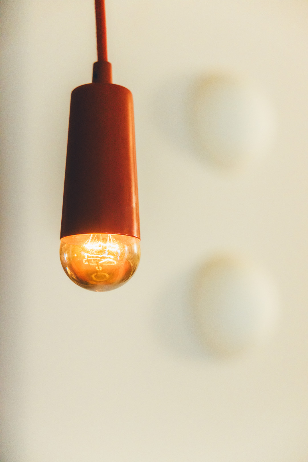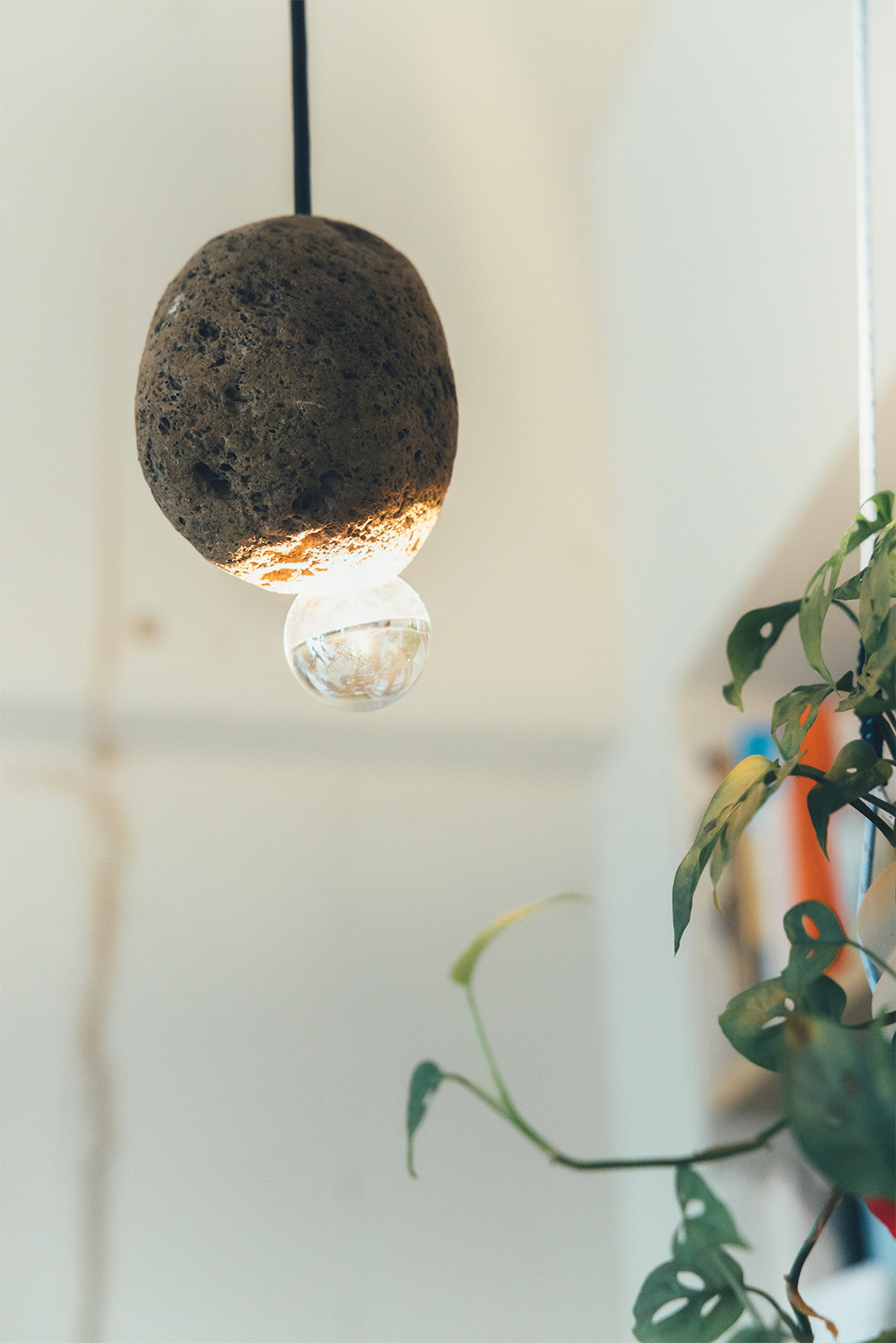 〈Plumen〉のペンダントライトは、光量の少ないものを選び、照明というよりは空間のアクセントとして取り入れているそう。