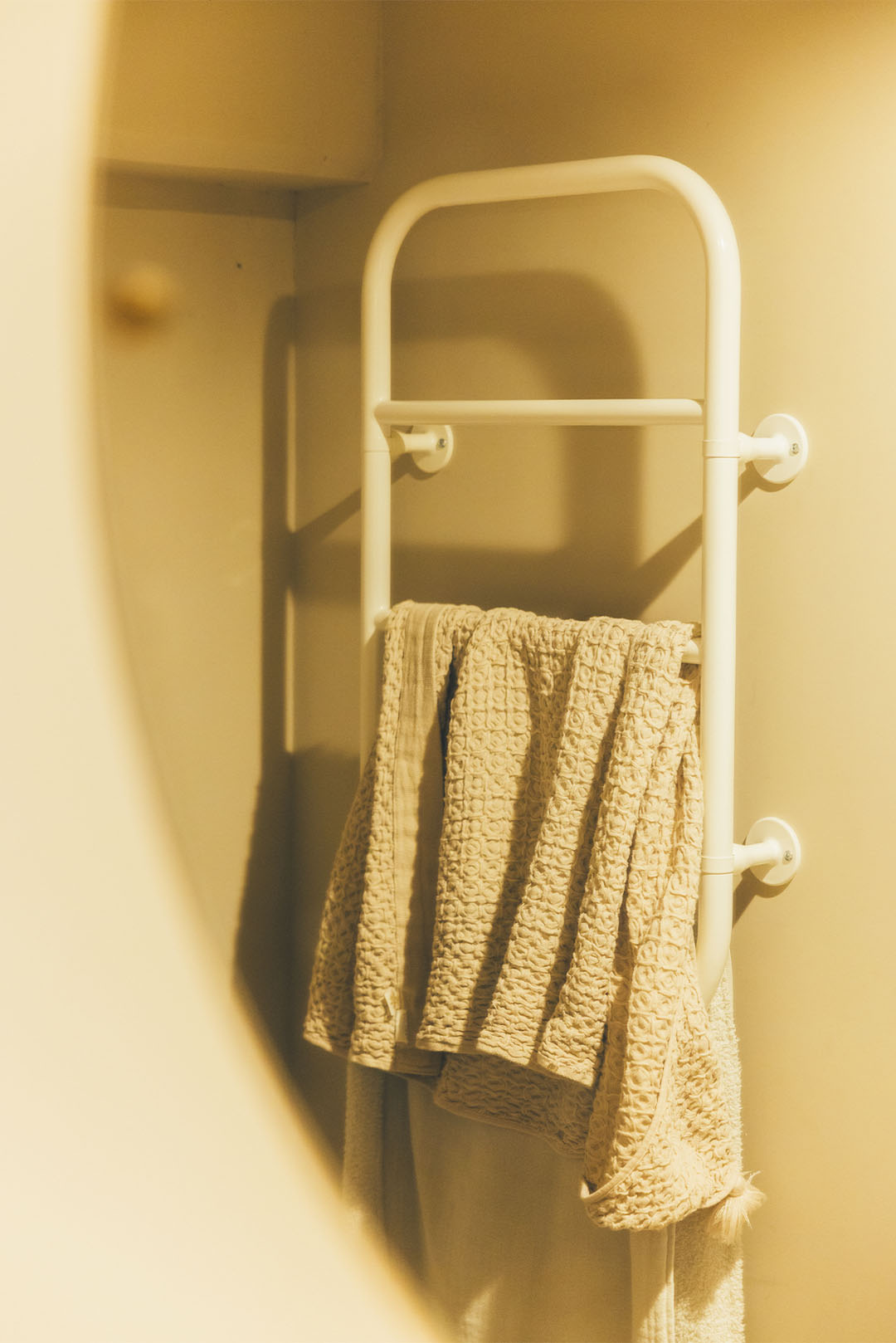 木綿さんがとても気に入っているという、タオルウォーマー。「中のオイルが循環して、かけているタオルをじんわりと温めて乾かしてくれます。使用するときにタオルがふかふかあったかになっていて、特に寒い季節は小さな幸せを感じます」(木綿さん)