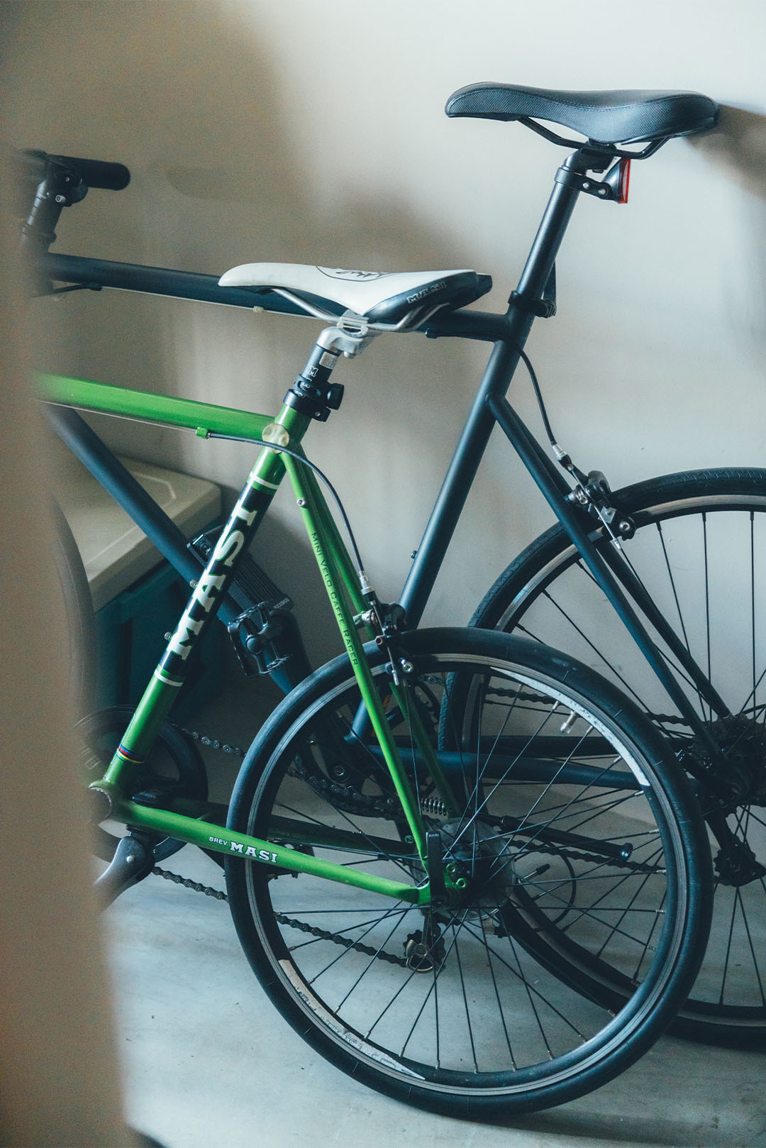 木綿さんはイタリアの老舗バイクブランド〈MASI〉、岳さんは〈tokyobike〉で購入したスポーツバイクをそれぞれ通勤時に愛用中。