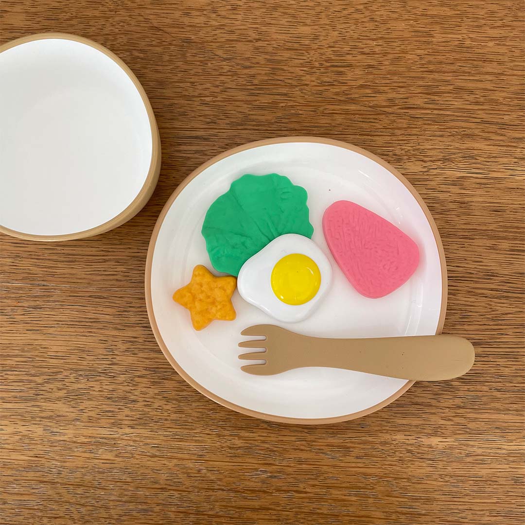 「シンプルながらもあたたかみのある『KINTO』のBONBOシリーズ。プレート、ボウル、カトラリーは、離乳食期から愛用しているもの。娘も愛着を持って使っています。内側は白いのでどんな料理にも合いますし、何より割れにくいのがポイント! ギフトボックスもあるのでお祝いにもぴったりです」(編集・M/8歳男の子&3歳女の子のママ)