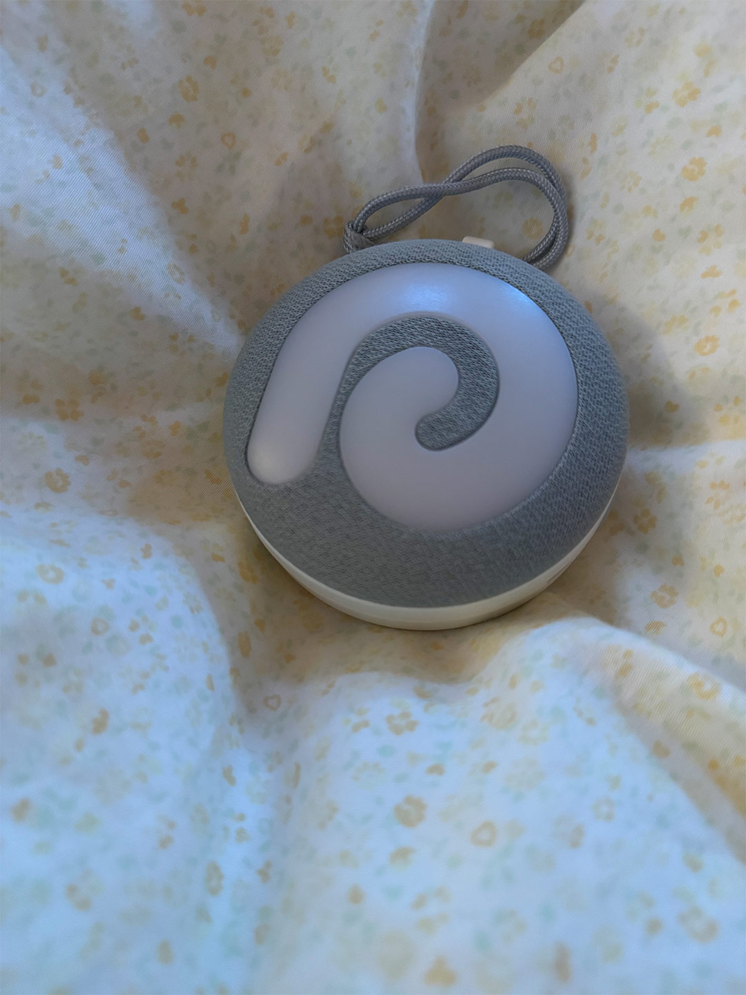 「赤ちゃんの寝つきが悪いときには『ドリームエッグ』がおすすめ。ホワイトノイズ、海の波打つ音、虫の鳴き声など11種もの癒しサウンドが出て、泣いているときに聞かせると大体落ち着くんです」
