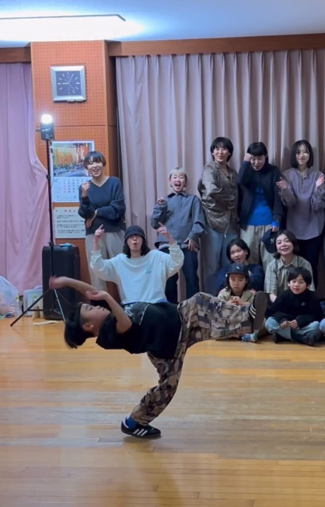 ダンスを始めたきっかけは、〈パプリカ〉です。NHKで流れていた〈パプリカ〉にどハマりして、そこから瑛人さんの「香水」のMVに出てくるダンサーのマネをしたり、BTSのMVを見ては踊ったり。そこそこ振りをマネて踊っていたので、習い事をするならダンスかな、ということで4歳から習いはじめました。はじめは近所の公民館で。その時の先生が渡英されたので、5歳から福岡県水巻町を拠点に活動するダンススポット〈jABBKLAB〉に通うようになりました。このスタジオを運営しているのが、人気ダンサーのyurinasiaさんと、ブレイクダンサーのayumuguguさん夫妻。次のダンスの先生を探しているタイミングで、yurinasiaさんをメディアで拝見し、この距離なら通える!と思い、足を運んだのがきっかけです。体験初日は、緊張で大泣きし見学のみ。ただそんな状態でも本人はyurinasia さんのダンスが好きで、習いたいという気持ちは強かったので、あたって砕けろ精神で入所を決めました。