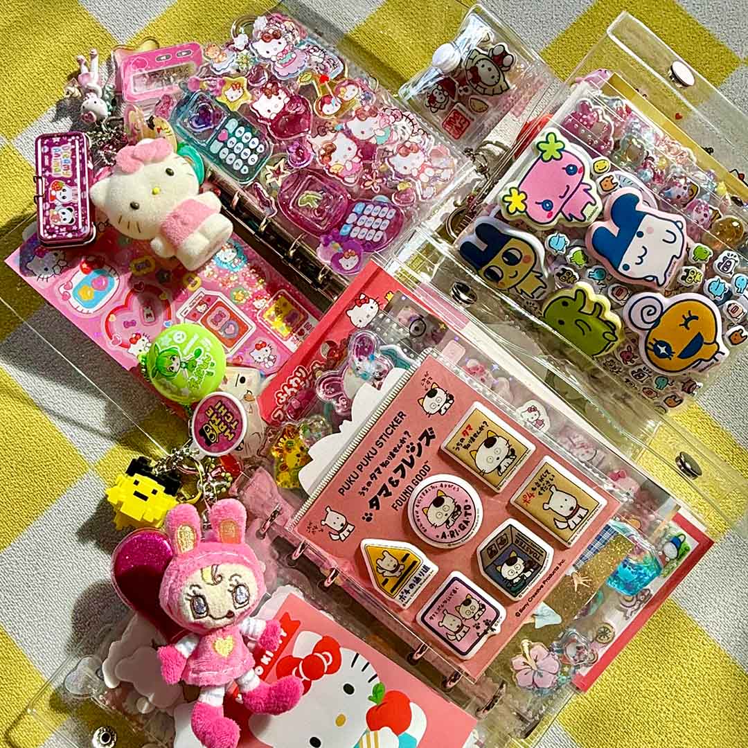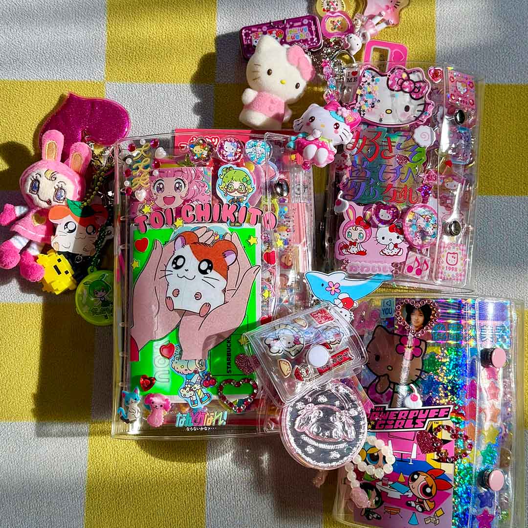 「『見ていて楽しい! ずっと見ちゃう』をテーマに、今まで集めていたシールでシール帳をつくっています♪ 3冊のシール帳を持っていて、〈ハム太郎〉のシールを貼ったA6サイズのものは、台紙ごとコレクションしたいときに使っています。表紙にもこだわっていて、色味や配置など何度も修正するので、完成までに時間がかかることも。シールは、ファンシーショップやヴィレッジヴァンガード、ロフト、100円ショップもチェック。交換のルールは結構ゆるゆるで、なんでもOKです(笑)。相手の欲しいシールをあげたい♡」