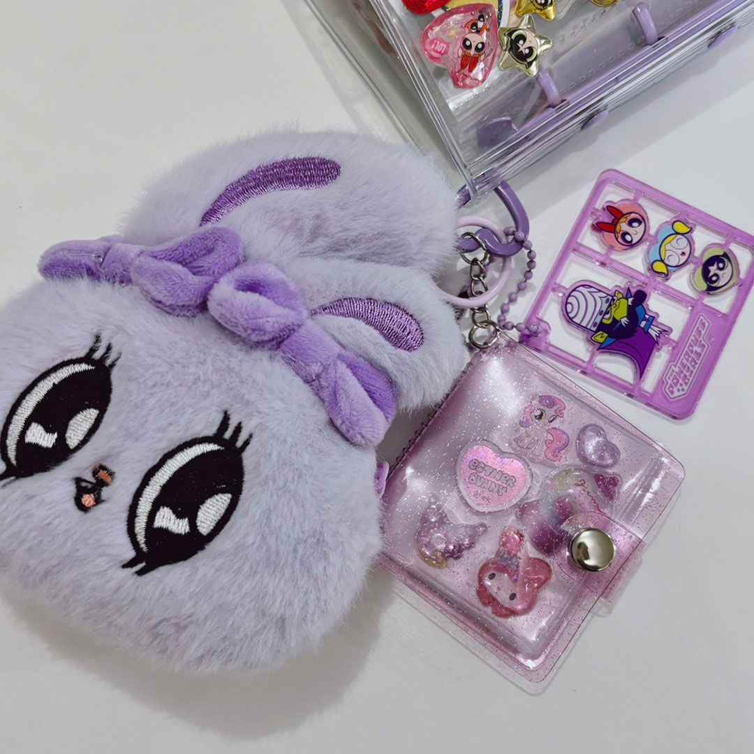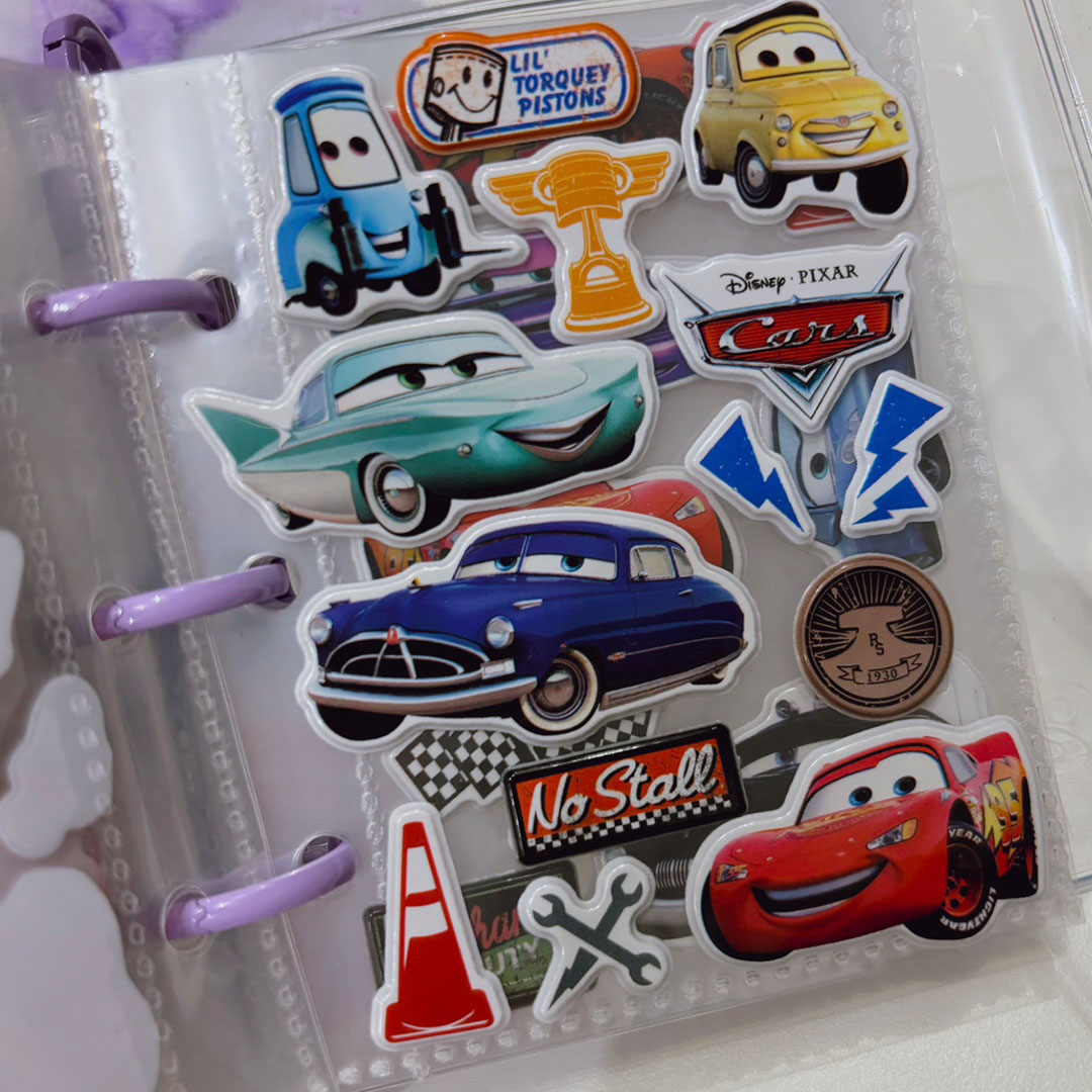 「娘と一緒に楽しめたらと思い、シール帳を始めました。可愛いものを集めていたら、ラベンダーだらけのシール帳が完成。シールが派手なので、台紙やファイルはシンプルなものに。シールは立体的なものを集めています。キャラクターや種類ごとに貼るようにしていて、台紙の片面にだけ貼るのもこだわりのひとつ。シールは、ショッピングモールの文具エリアやファンシー雑貨屋、ロフト、コンビニ、ネットなどで購入しています。コレクションと化していて、娘と以外交換していません(笑)」