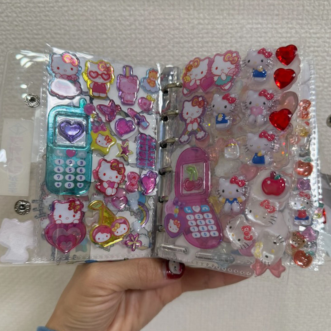 「娘がシール交換を友だちとしていたことがきっかけで、私もシール帳づくりを始めました。もともと〈キティちゃん〉の収集癖があるので、主に〈キティちゃん〉のシールを集めています。シール帳は自分でデコりたいので、シンプルなものをチョイス。表紙は大好きな〈キティちゃん〉でいっぱいにしました! 最近はシールが売り切れていて、なかなか購入できないので、Qoo10で探すことも。シール交換に関しては、交渉は絶対です!(笑)」