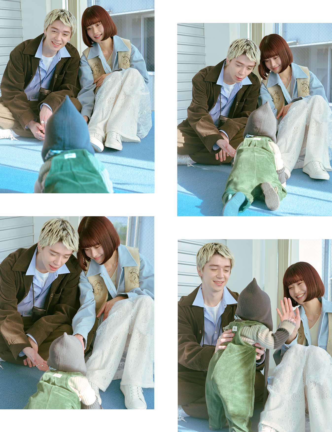 「ベビーが主役になるようなファミリーファッションを目指しています」と語るおふたり。ワントーンでまとめたスタイリッシュなコーデや、愛用のアイテムをご紹介。
