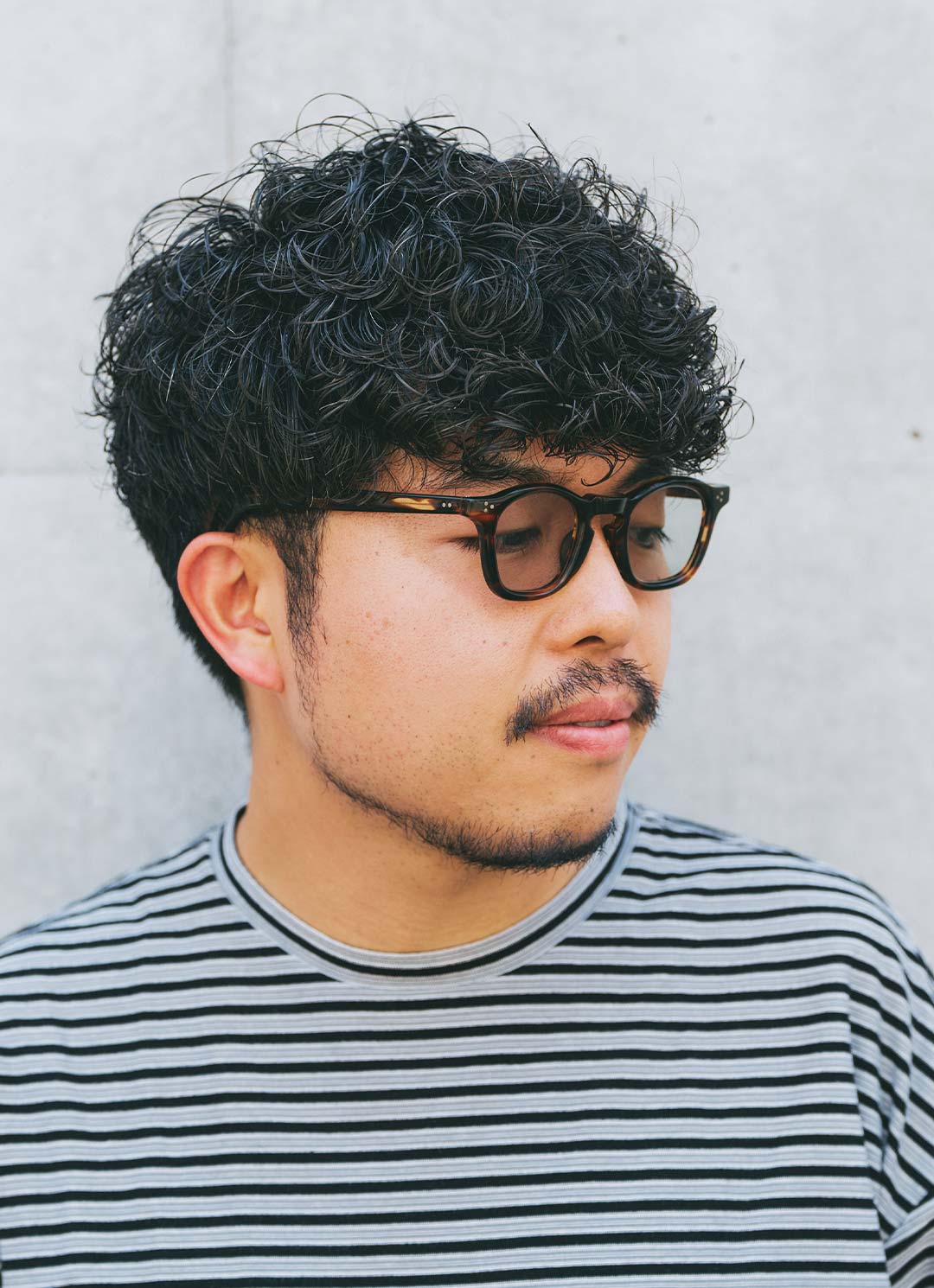 顔周りのアクセントにクラシックなべっ甲柄のメガネを投入! コーデをグッと引き締めてくれる優秀アイテム。